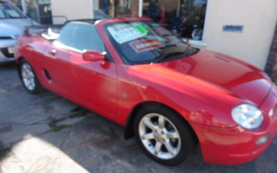 MGF 1.8 AUTOMATIC SPORTS CONVERTIBLE2-DOOR SOFT-TOP IN RED, BLACK HOOD , WITH CONTRASTING RED AND BLACK LEATHER TRIM. P.A.S. COLOUR CODED BUMPERS & MIRRORS, ELECTRIC WINDOWS & MIRRORS, REMOTE CUNTRAL LOCKING AND ALARM, OIL PRESSURE, WATER TEMP & REV COUNTER, FOGS, SINGLE PLAY CD – RADIO, ALLOY WHEELS, TOURNAE COVER, FULL SIZE SPARE WHEEL AND TOOLS,SERVICE HISTORY, BOOT RACK FITTED.MUST BE SEEN, WITH ONLY 49,000 MILES
