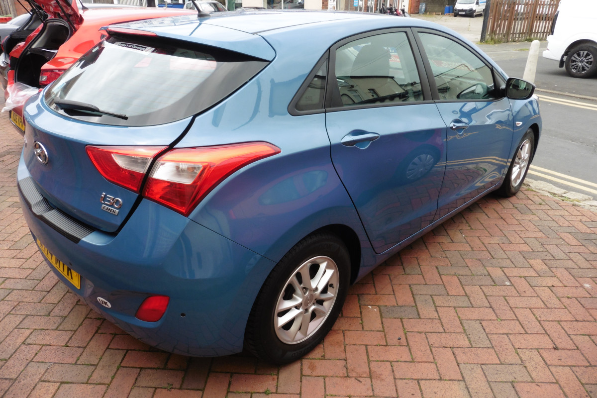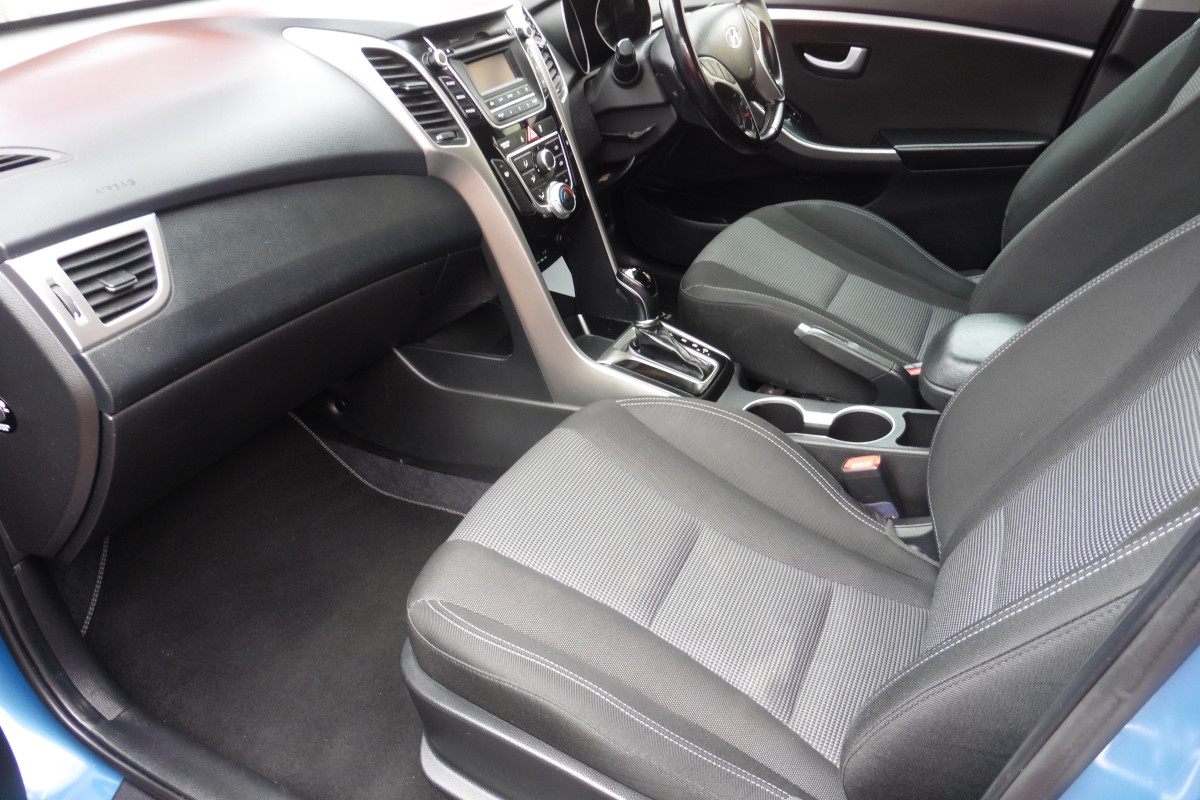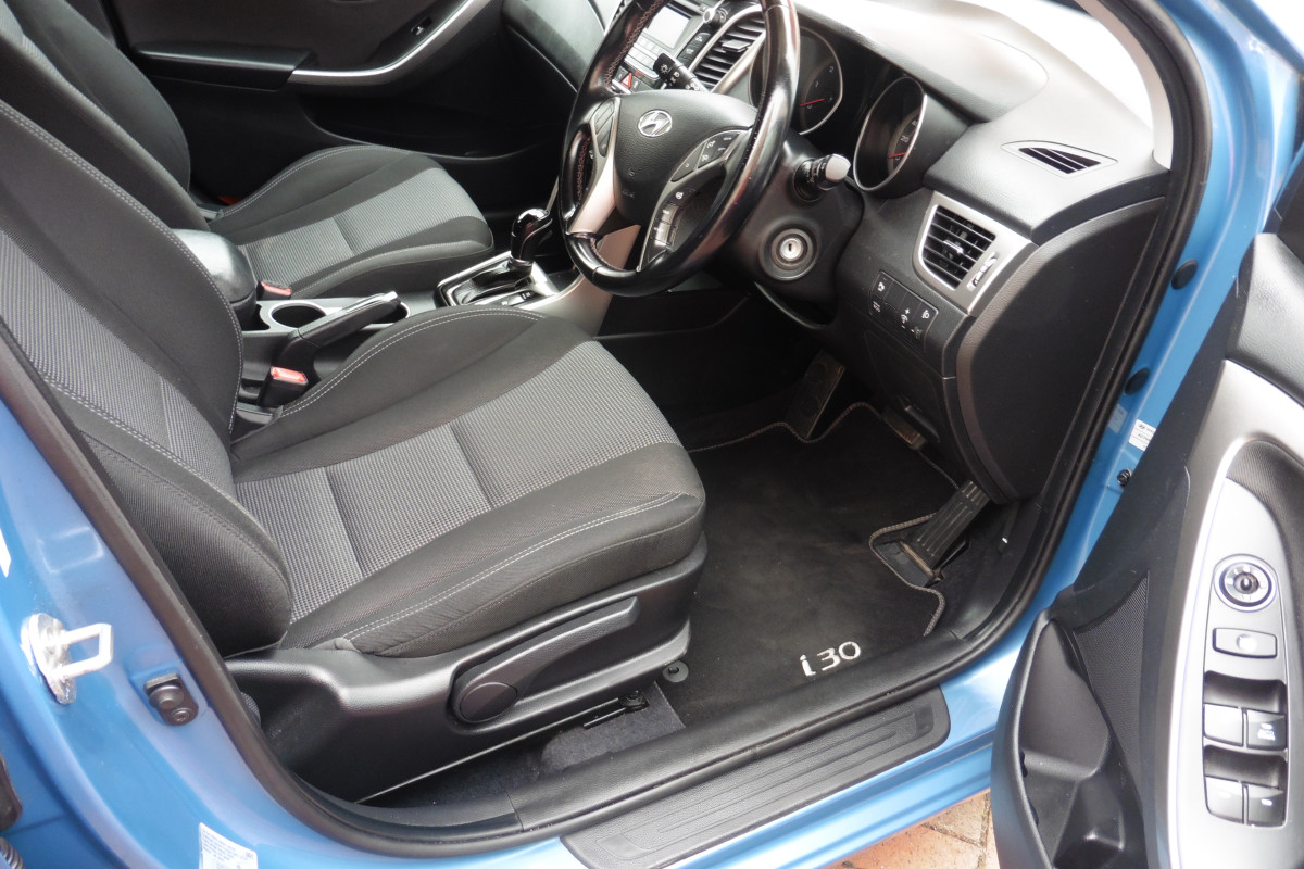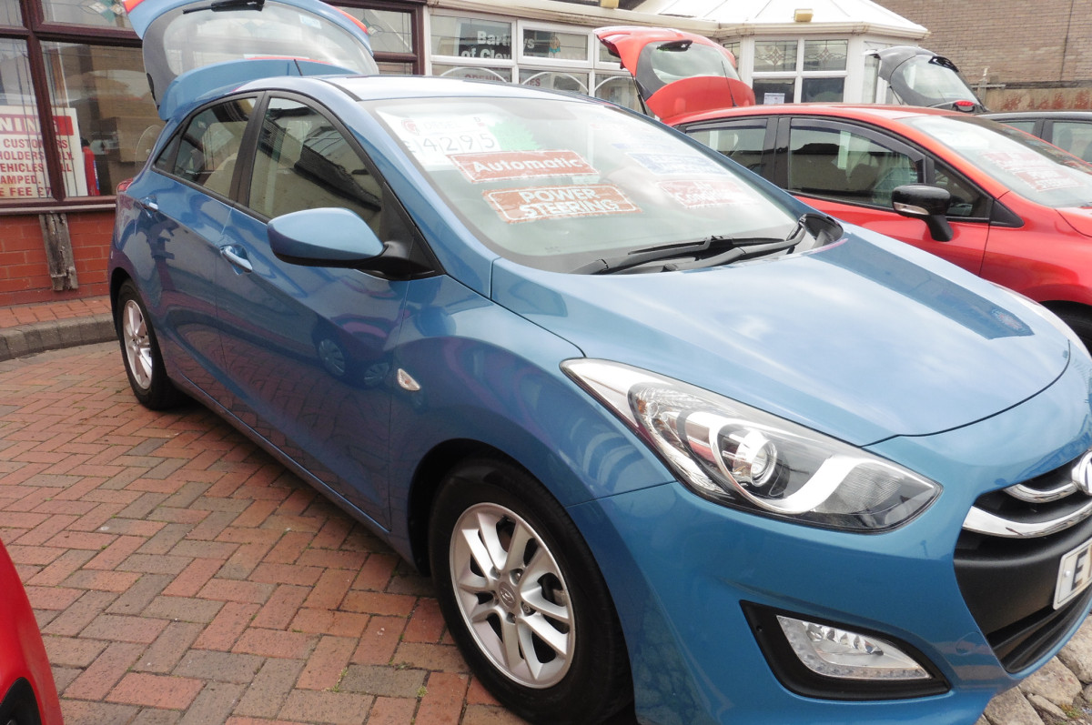 HYUNDIA i30 AUTOMATIC ACTIVE CRDi DIESEL 1.6 5-DOOR HATCHBACK IN METALLIC LIGHTBLUE WITH CONTRASTING TRIM, COLOUR CODED BUMPERS & MIRRORS, P.A.S. AIR BAGS, SINGLE PLAY CD RADIO, BLUETOOTH CONECTIVITY, 12v,USB & AUX SOCKETS, AIR CONDITIONING, REMOYE ALARM & CENTRAL LOCKING, TWO KEYS,ELECTRIC WINDOWS AND MIRRORS,HEIGHT ADJUST FRONT SEAT, SPARE WHEEL AND TOOLS,PARKING SENSORS,CRUISE CONTROL & SPEED LIMITER, ALLOY WHEELS, FITTED MATS,MANY EXTRAS, HAVING BEEN SOLD AND SERVICED PREVIOUSLY BY OURSELVES, SERVICE HISTORY WITH ONY 75,000 MILES