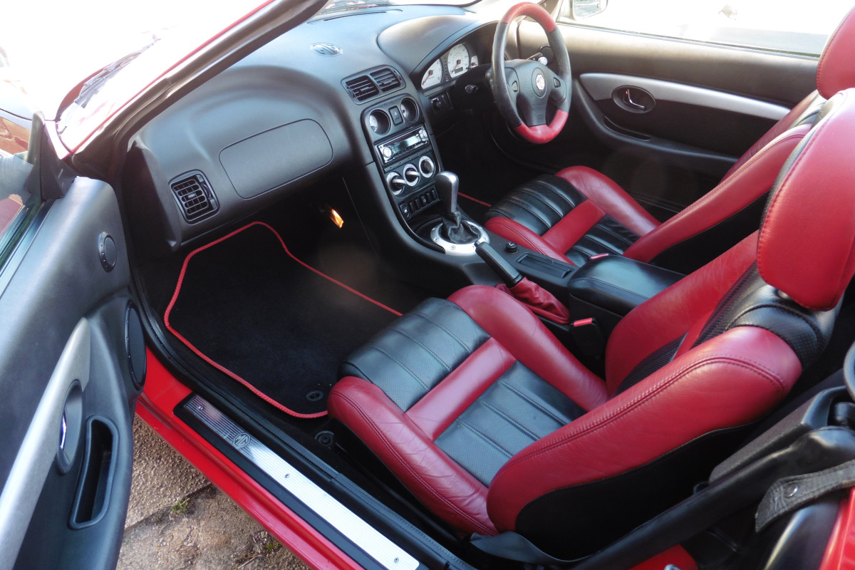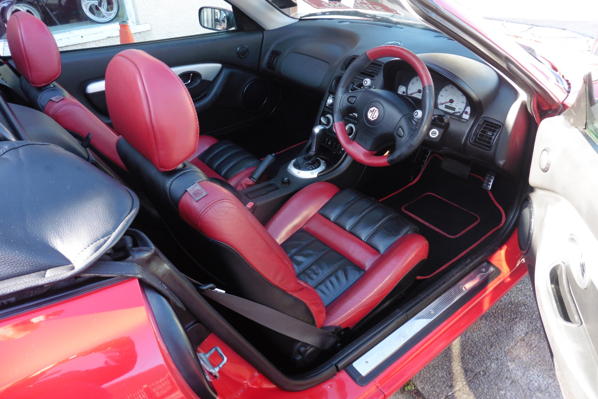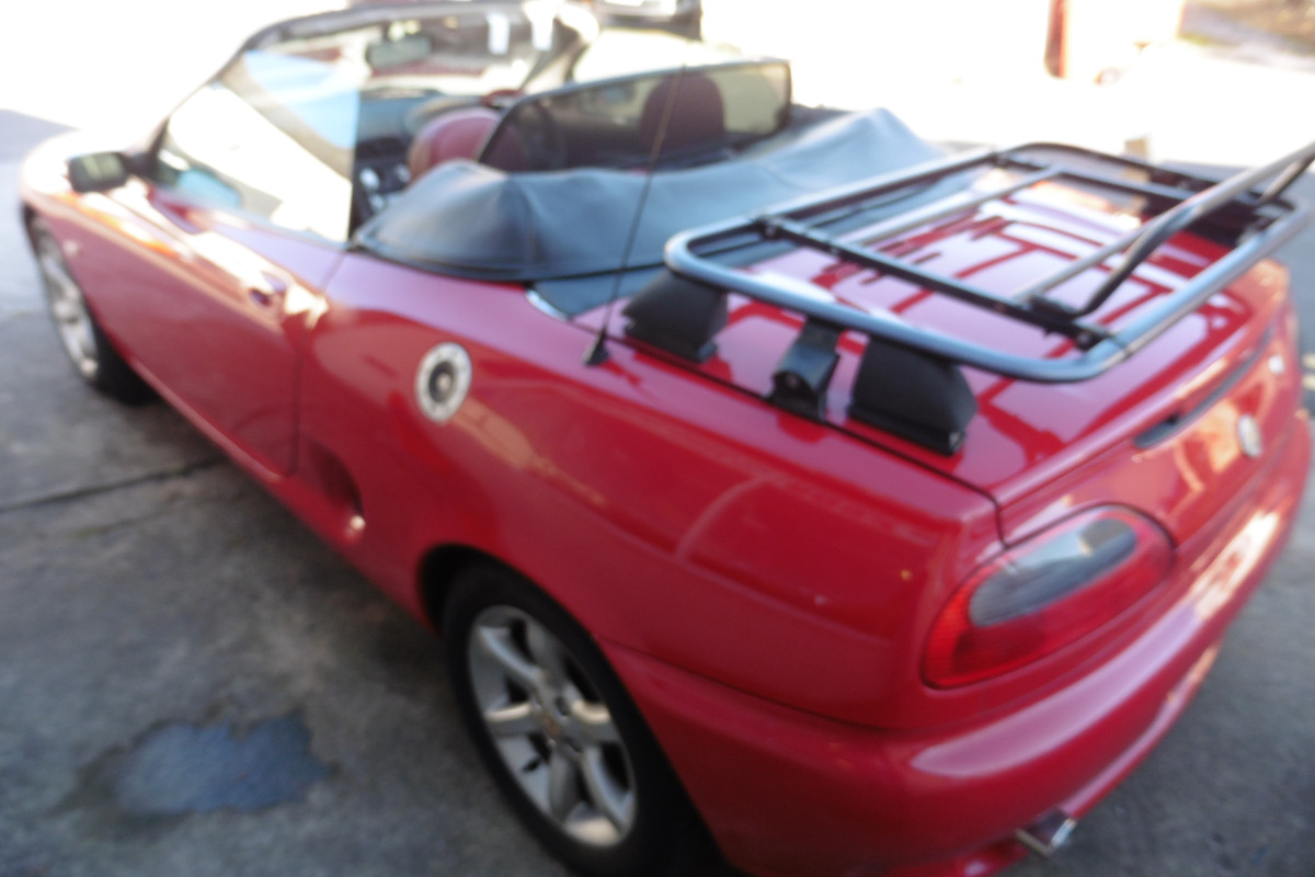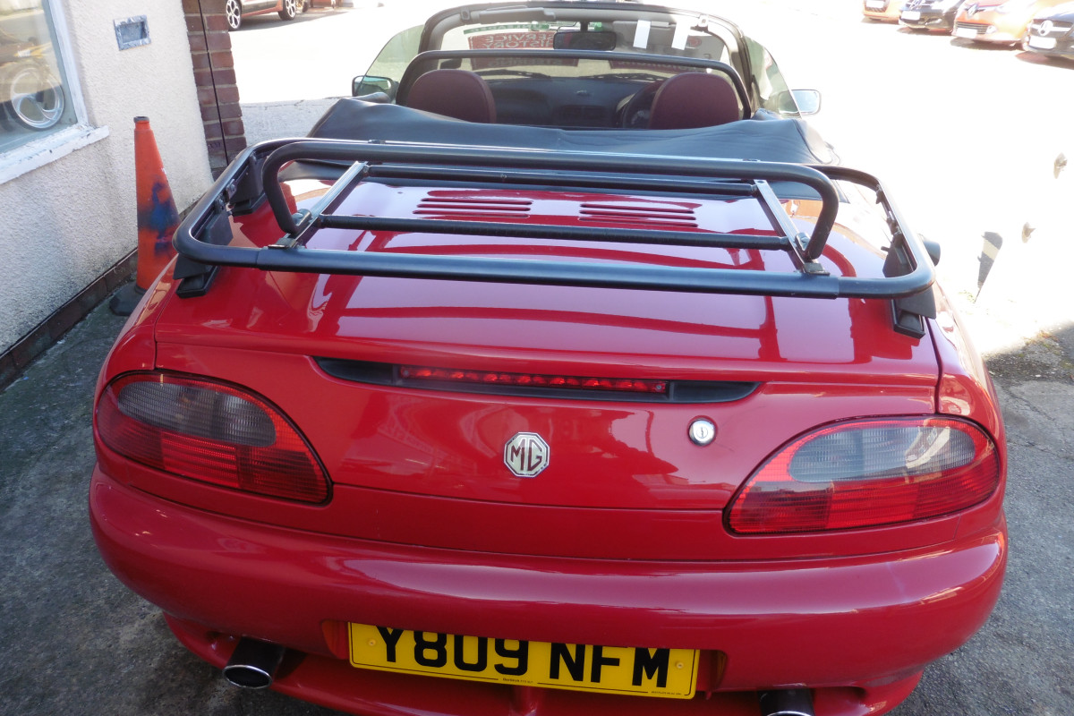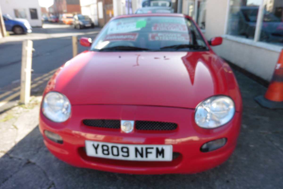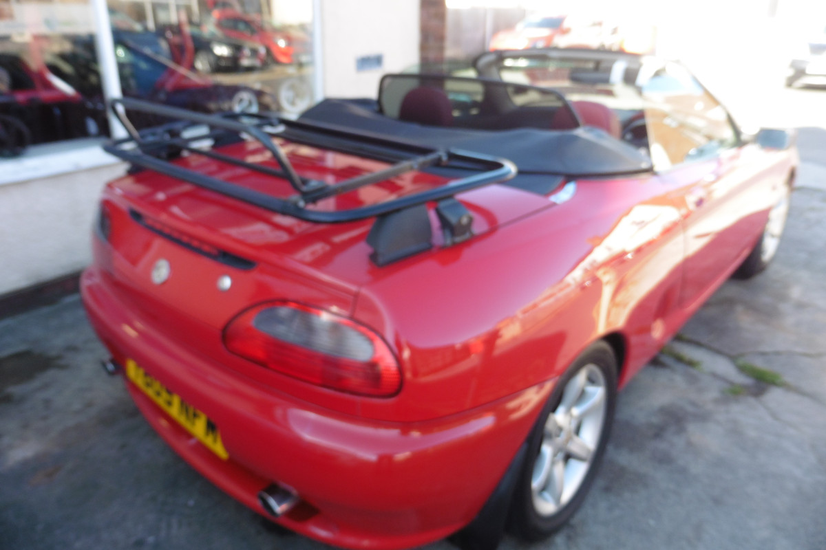 MGF 1.8 AUTOMATIC SPORTS CONVERTIBLE2-DOOR SOFT-TOP IN RED, BLACK HOOD , WITH CONTRASTING RED AND BLACK LEATHER TRIM. P.A.S. COLOUR CODED BUMPERS & MIRRORS, ELECTRIC WINDOWS & MIRRORS, REMOTE CUNTRAL LOCKING AND ALARM, OIL PRESSURE, WATER TEMP & REV COUNTER, FOGS,  SINGLE PLAY CD – RADIO, ALLOY WHEELS, TOURNAE COVER, FULL SIZE SPARE WHEEL AND TOOLS,SERVICE HISTORY, BOOT RACK FITTED.MUST BE SEEN,  WITH ONLY 49,000 MILES