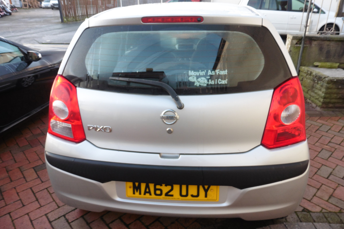 Low MilesNISSAN PIXO 1.0 N-TEC 5-DPPR HATCHBACK IN METALLIC SILVER WUTH CONTRASTING TRIM ,COLOUR CODED BUMPERS, DOOR HANDLES & MIRRORS, P.A.S. REMOTE ALARM & CENTRAL LOCKING, TWP KEYS,SINGLE PLAY CD-RADIO, BLUETOOTH CONECTIVITY, AIR CONDITIONING, HEIGHT ADJUST FRONT SEAT, ALLOY WHEELS, (LOCKING NUT), FRONT & REAR MATS , LOW INSURANCE, ECONOMICAL, REDUCED TAX BAND FULL VOSA SERVICE HISTORY, WITH ONE FORMER KEEPER ONLY 19,000 YES 19,000 MLS