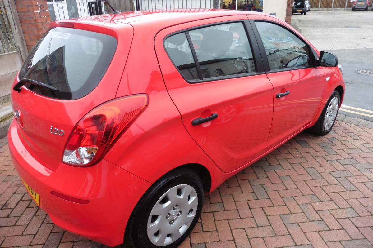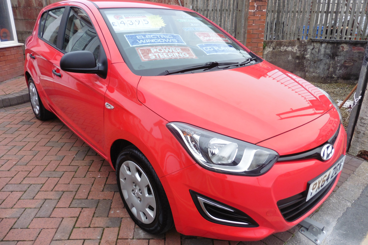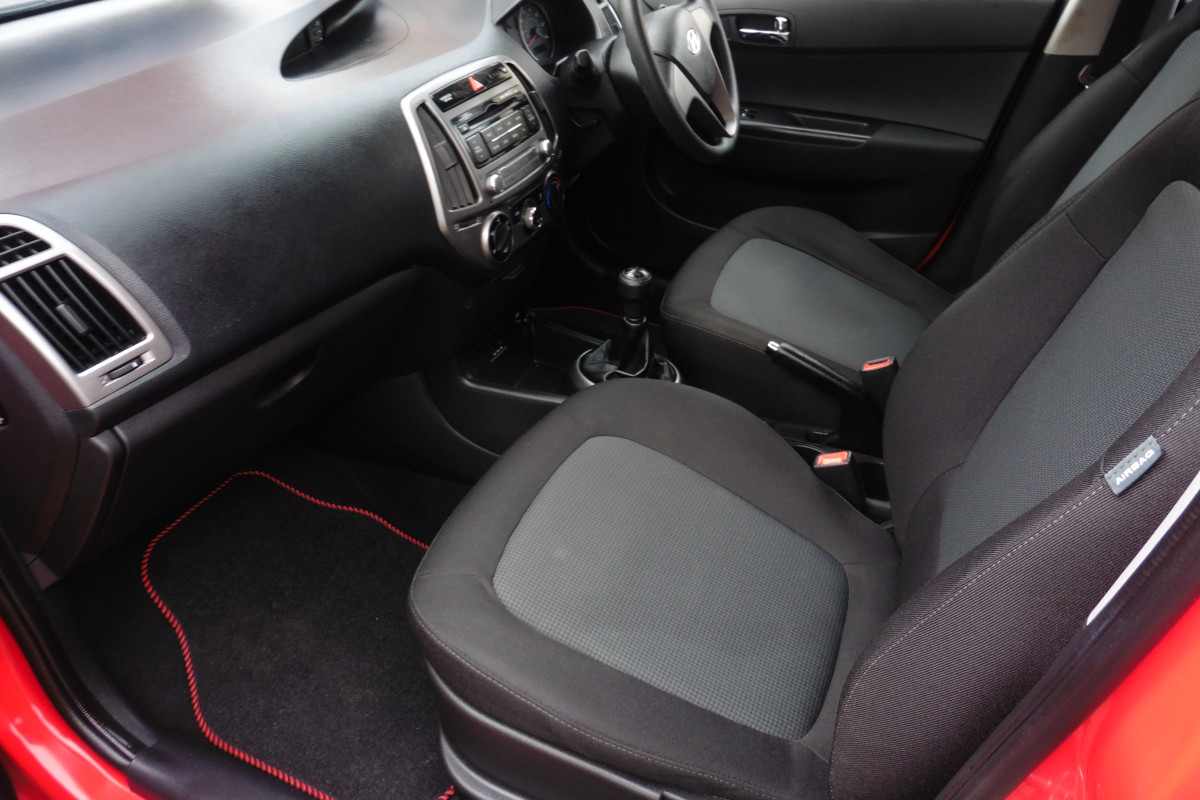 HYUNDIA i20 CLASSIC 1.2 5-DOOR HATCHBACK IN RED WITH CONTRASTING TRIM, P.A.S. COLOUR CODED BUMPERS, AIR BAGS, DAYLIGHT RUNNING LIGHTS, AIR CONDITIONING, SINGLE PLAY CD-RADIO, REMOTE ALARM & CENTRAL LOCKING, TWO KEYS, HEIGHT ADJUST FRONT SEAT,USB & 12v SOCKETS, REAR FOGS, GET YOU HOME SPARE WHEEL & TOOLS , REDUCED TAX BAND , LOW INSURANCE, ECONOMICAL, SERVICE HISTORY WITH ONLY 30,000 MILES