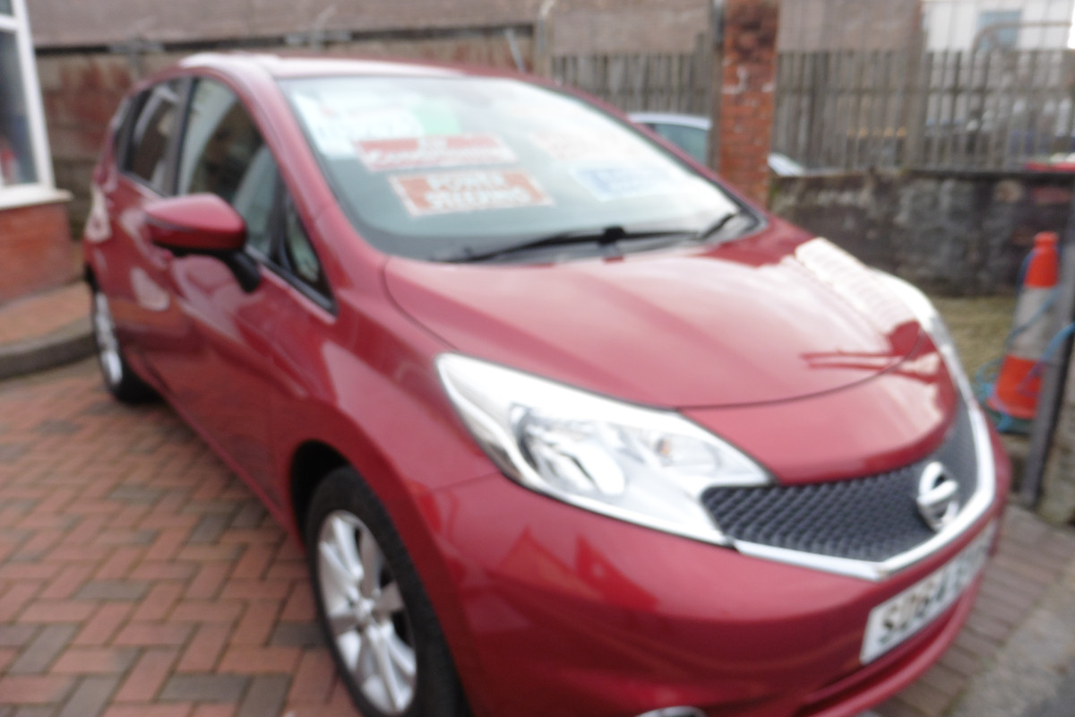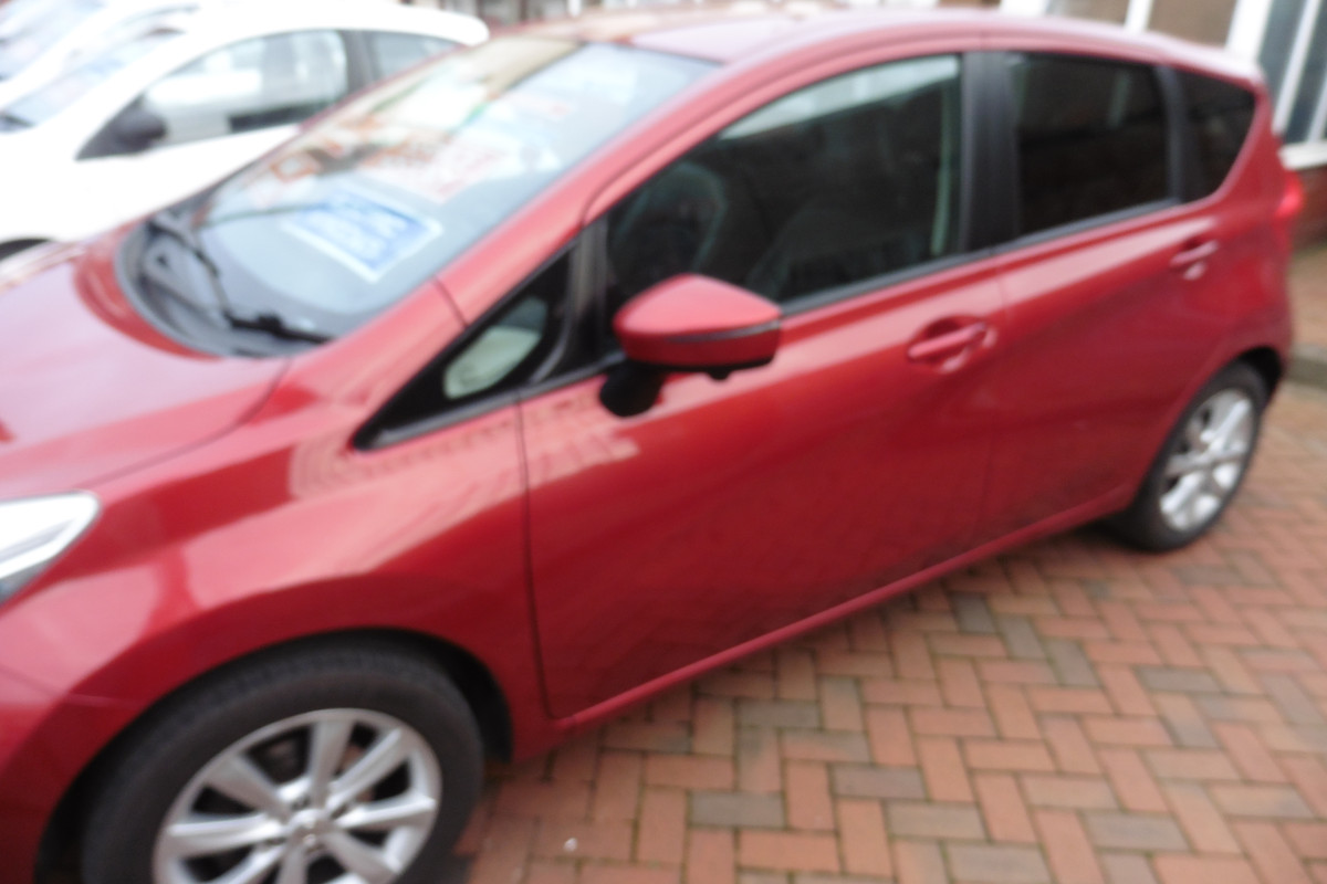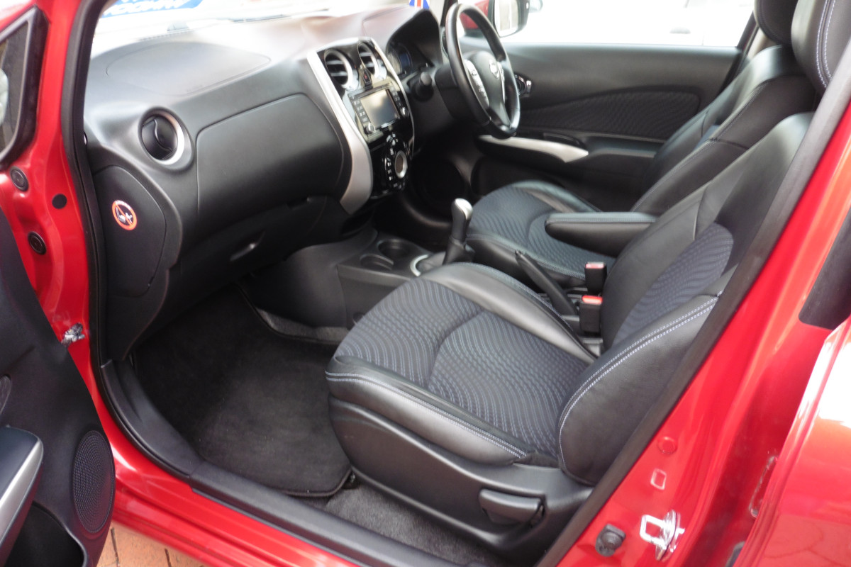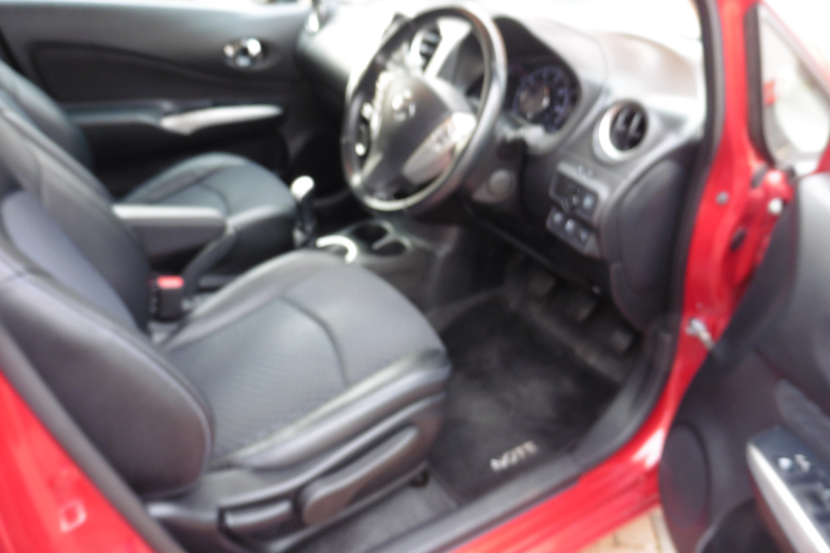 Low MilesNISSAN NOTE 1.2 TEKNA DIG-S 5-DOOR -5-SEATS M.P.V. IN METTALIC RED WITH HALF LEATHER TRIM, P.A.S. COLOUR CODED BUMPERS , MIRRORS, DOOR HANDLES AND BODY MOULDS, REMOTR ALARM AND KEY LESS ENTRY, WITH CENTRAL LOCKING, TWO KEY FOBS, AIR BAGS, SINGLE PLAY CD-RADIO, BLUETOOTH CONECTIVITY, AIR CONDITIONING HEIGHT ADJUS FRONT SEAT, CRUISE CONTROL, PARKING SENSORS, PRIVACY REAR GLASS,DAYLIGHT RUING LIGHTS MULTI FUNCTION STEERING WHEEL, ALLOY WHEELS, REDUCED TAX BAND ,FULL SERVICE HISTORY WITH ONLY 31,000