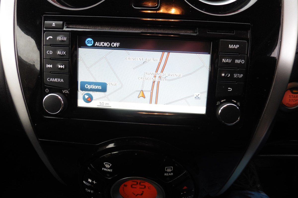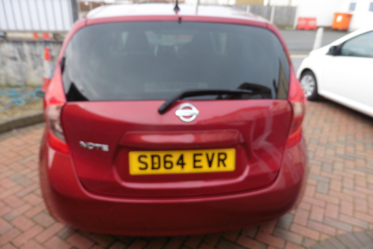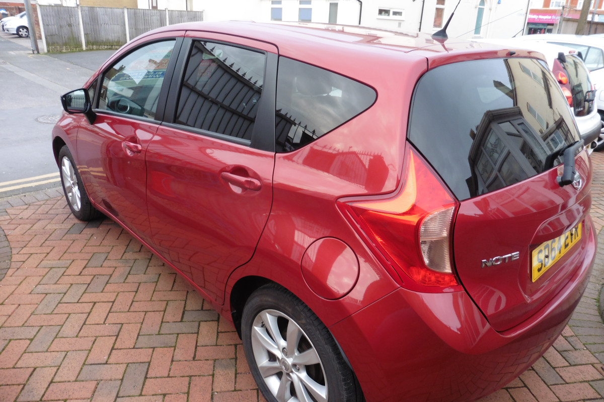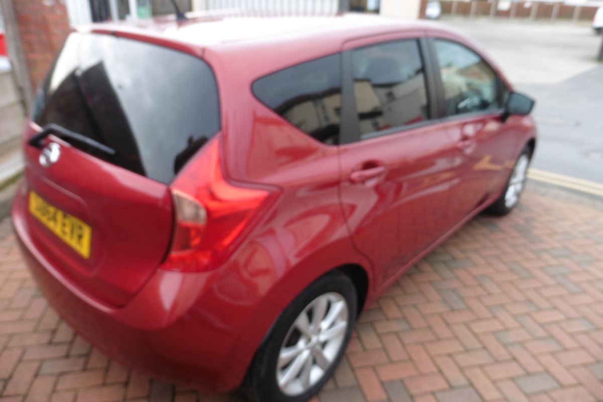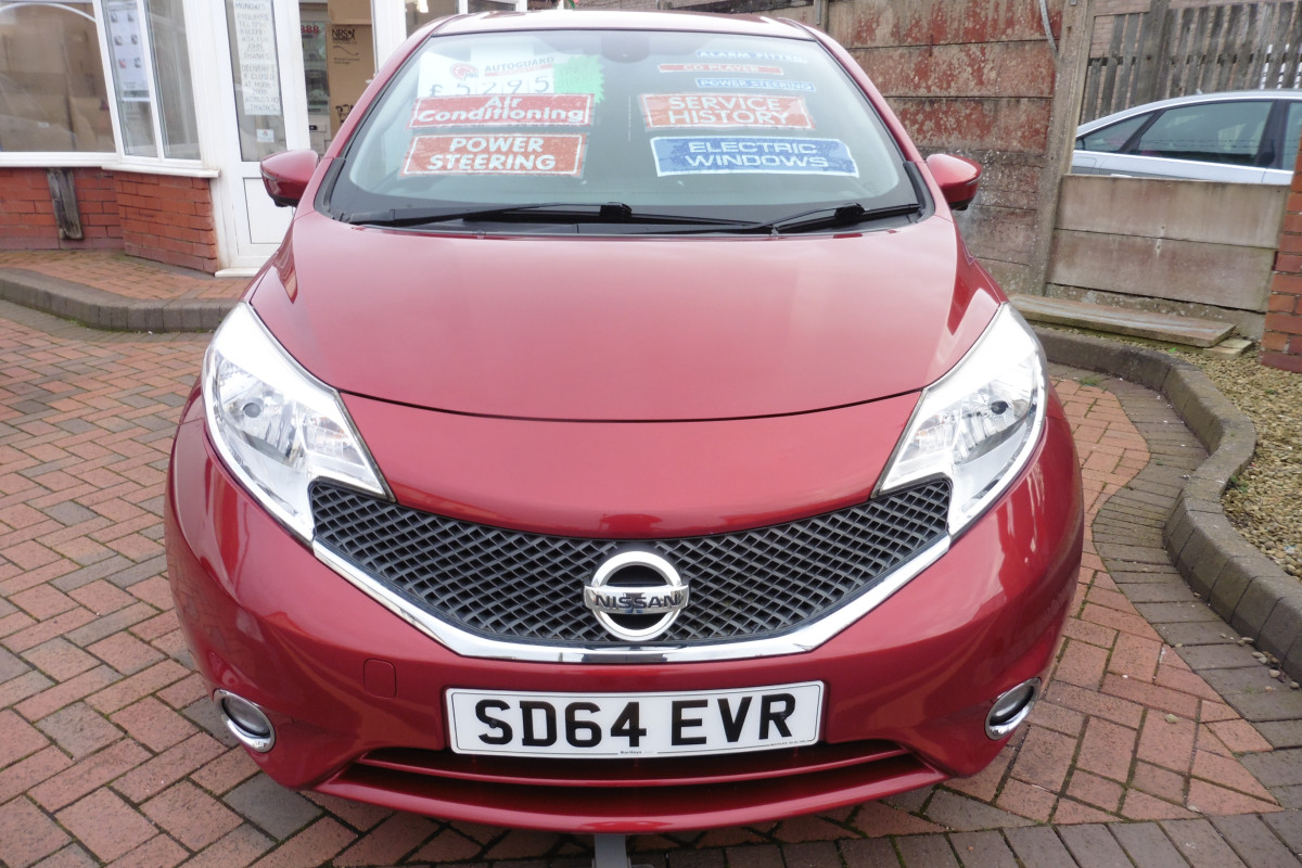 Low MilesNISSAN NOTE 1.2 TEKNA DIG-S 5-DOOR -5-SEATS M.P.V. IN METTALIC RED WITH HALF LEATHER TRIM, P.A.S. COLOUR CODED BUMPERS , MIRRORS, DOOR HANDLES AND BODY MOULDS, REMOTR ALARM AND KEY LESS ENTRY, WITH CENTRAL LOCKING, TWO KEY FOBS, AIR BAGS, SINGLE PLAY CD-RADIO, BLUETOOTH CONECTIVITY, AIR CONDITIONING HEIGHT ADJUS FRONT SEAT, CRUISE CONTROL, PARKING SENSORS, PRIVACY REAR GLASS,DAYLIGHT RUING LIGHTS MULTI FUNCTION STEERING WHEEL, ALLOY WHEELS, REDUCED TAX BAND ,FULL SERVICE HISTORY WITH ONLY 31,000